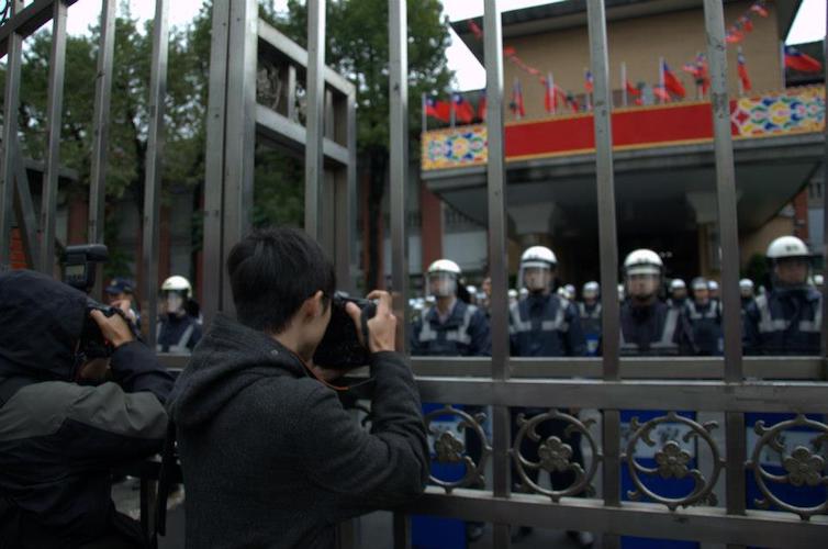 教育部原先的規劃,是搭鷹架進行換牌的工程,臺北市政府五日下午前往園區拆卸牌匾下的鷹架時,遭到莊國榮等人的阻攔,市政府隨即以妨害公務為由,將莊國榮等人函送法辦。