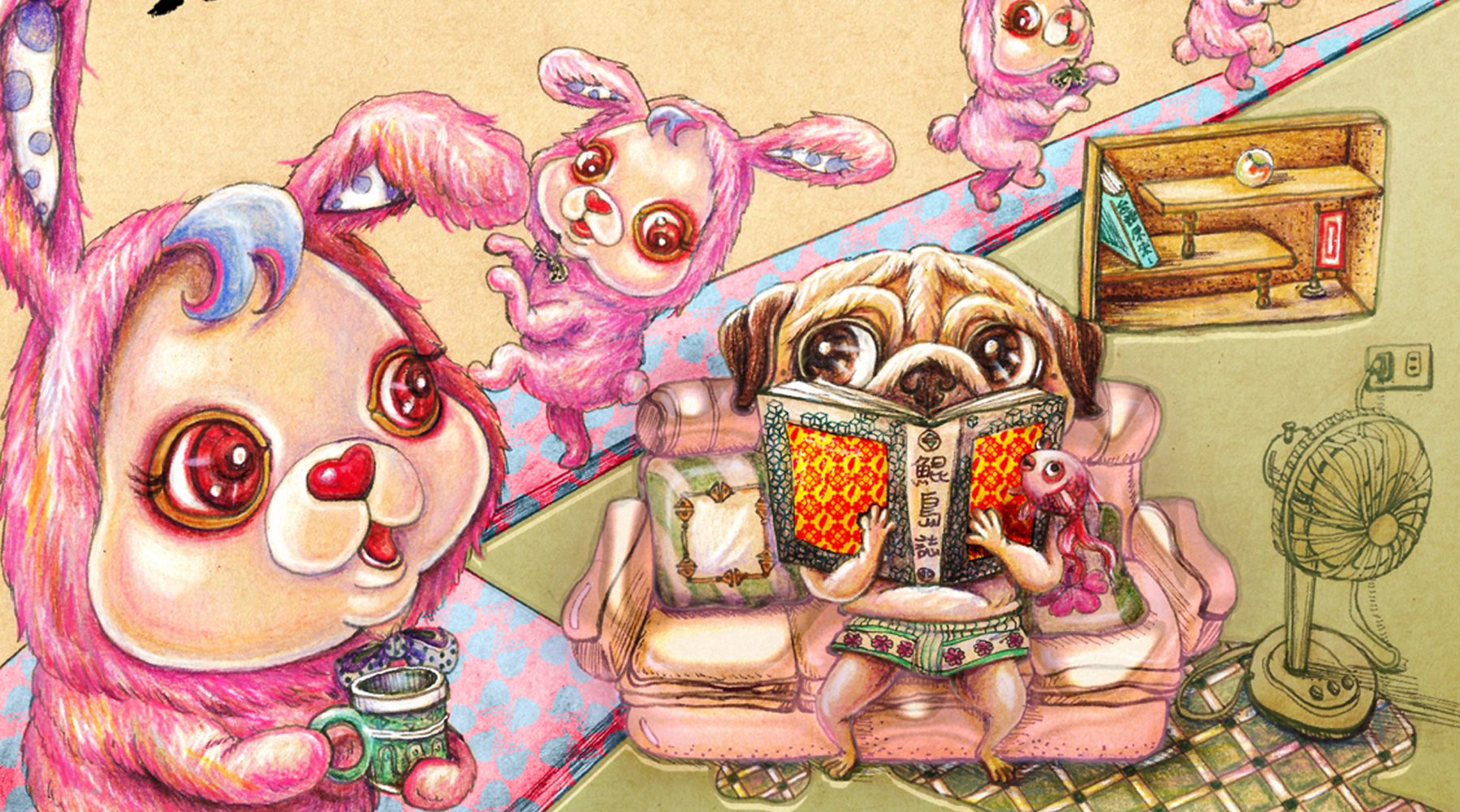 這個「拎」字,有抬高提起、 拉引的動作,而「挲」用來形容放在一旁的手,讓觀者不自覺融入畫面中的氣氛, 似乎已經可以感受到她準備下一個動作了。畢竟,手持著杯子,下一個動作要嘛 不是已經喝過了茶準備放下杯子、否則就是一口飲下杯中的茶,可說是充滿了視覺動態感。