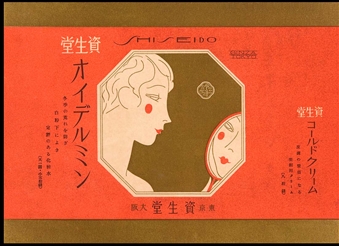 另一個 1943 年資生堂洗面乳的廣告結合了象徵國徽的日出,但仍舊強調個人衛生的重要性。文案寫著:比起在乎臉蛋,更重要的是心靈的美麗。(顔よりもまず心のみだしなみ)