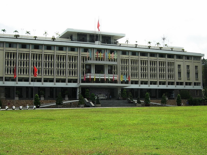 1962年,兩名南越空軍駕駛軍機轟炸總統府,企圖推翻當時的吳廷琰總統,導致原始的法式建築嚴重受損,吳廷琰、吳廷瑈、陳麗春逃過一劫後,聘請建築師吳曰樹(Ngo Viet Thu)重新改建,根據中國風水的觀念,將建築物的正面設計成「興」字,從空中鳥瞰時它變成「吉」字,希望藉此祈求國運昌隆。重建後的南越總統府建築內部共有四層樓一百個房間,每間房都配有當時先進的電子通訊設備,牆壁天花板可耐砲擊,屋頂有專屬的直升機坪,廚房使用全套日本進口廚具,地下室有軍情中心以及綿密的地道系統……。可惜1966年重建完成時,陳麗春與吳氏家族再也沒有機會進入。