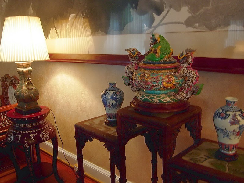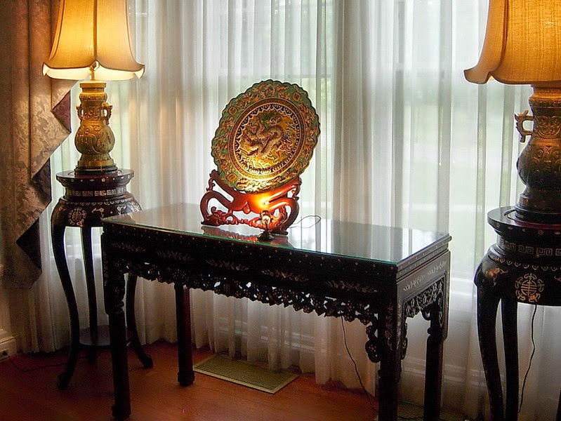 ↑中餐廳也被稱為Tiffany Room,除了紅木龍紋餐桌椅之外,就屬上方那座吊燈最珍貴,是當年赫伯德家族留下的Tiffany圓弧手工吊燈。