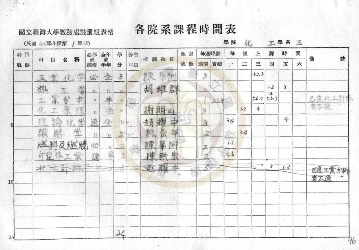 不只如此,陳華洲的幾項決定奠定臺大化工系日後發展的基礎。