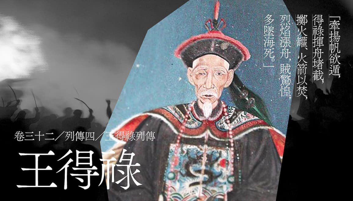 那名少年的名字,叫做王得祿。王得祿一生戰功彪炳,官拜水師提督,為清代臺籍官員中唯一。其一生的榮譽,正如他那一口氣念不完的傳記標題:〈皇清誥授振威將軍、太子太保、原任浙江水陸提督、二等子爵、世襲賞戴雙眼花翎、晉加太子太師、贈伯爵、賜祭葬、予諡果毅,顯考玉峰府君行述〉難以盡數。那麼,王得祿究竟是如何從一名紈褲少年,搖身一變成為率領數千官兵的水師提督呢?