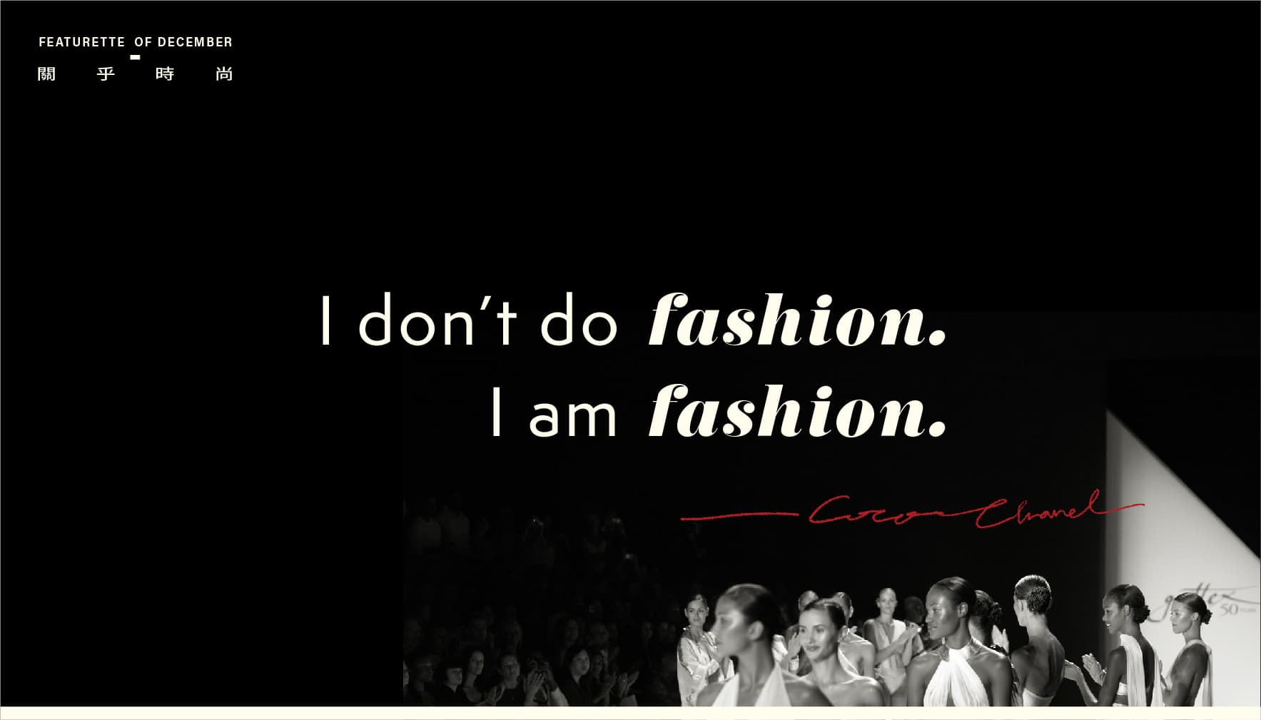 若是到街頭上隨機找人提問:「你覺得什麼是時尚?」得到的答案可能會像一句莎士比亞只在中國說過的英文俗語一樣:「一千個讀者就有一千個哈姆雷特」,一千個人會給出一千個不同的答案。 故事十二月關鍵字 ABOUT FASHION ,無意定義時尚,也無意評論時尚的高級或低俗,而是想讓讀者感受「時尚」在時間中的變化萬千,甚至進一步追問:什麼是時尚?又是什麼塑造了現在的時尚?