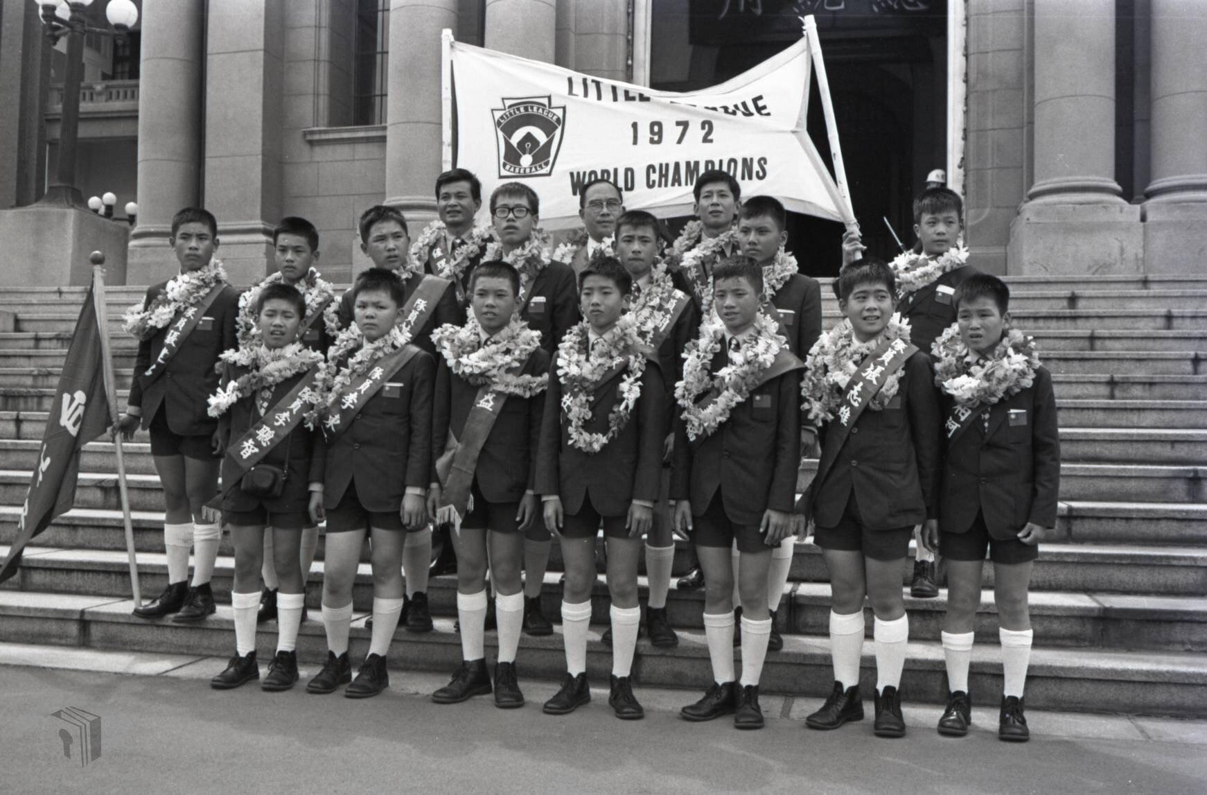 1972 年 8 月,在前後兩週之間,我國青少棒隊和少棒隊,連續贏得了兩次世界冠軍,當時適逢我國在外交上遭遇挫折及面臨艱難之際,而在國際大賽的成績,仍證明我國實力堅強並具備潛力,也加強國人對未來的信心。1972 年 9 月,臺北市少棒隊與青少棒隊聯袂搭乘中華航空公司班機抵達臺北時,受到全國各界廣大歡迎,在民眾報以熱烈的掌聲中,依序下機(圖 11),並搭乘花車遊行臺北市區(圖 12、圖 13、圖 14),沿途伴隨不斷的鞭炮聲與熱情球迷的歡呼聲,接受民眾的夾道歡迎,行經總統府時,車隊停留,少棒及青少棒隊成員手持旗幟於總統府前台階上合影留念(圖 15),之後更出席各界舉辦的歡迎會,以答謝全國的支持與愛護(圖 16)。