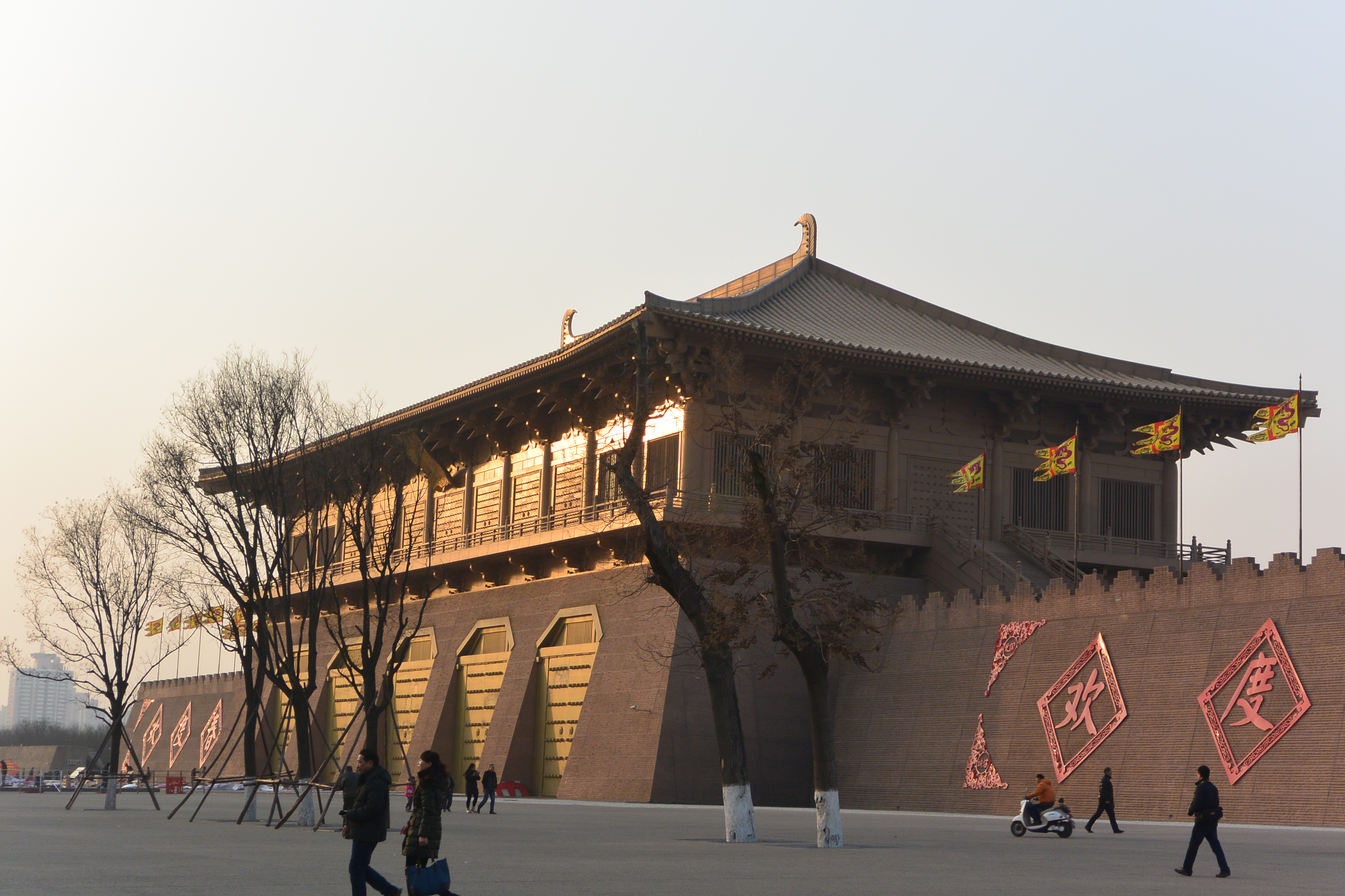 唐代時,大明宮是高宗朝的政治中心,目前已成為大明宮遺址公園。丹鳳門是大明宮的正門,地位與太極宮的承天門相同,都屬宮城正門,從門道寬 8.5 米可知丹鳳門地位之尊、等格之高、規模之大,均居都城門闕之首。這座城門建於唐高宗年間,城牆上的丹鳳樓與含元殿、宣政殿、紫宸殿相望,形成大明宮的中軸線,古代的御駕便從此通過,凡登基、改元、大赦等大事都於此舉行。