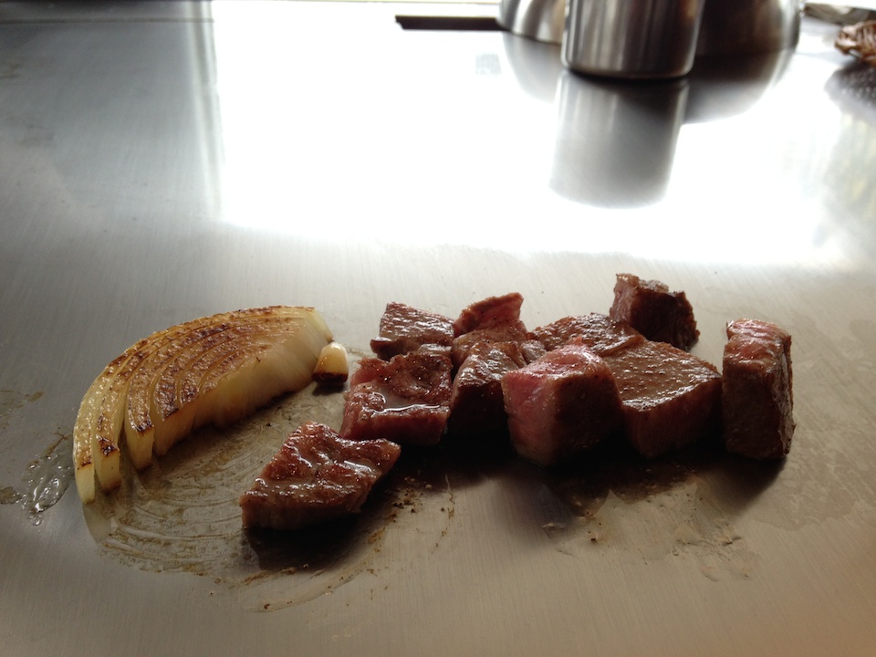 話說回世界上最貴料理之一的神戶牛,到底有多貴呢?以神戶街上的餐廳而言,沒有準備 3000 日元大概是吃不到了。筆者曾經藉著出差到關西的時候,在自己的生日那天按圖索驥來到了神戶,搭地鐵在三宮站下車,好不容易找到了鐵板燒的發源地 Misono 餐廳。