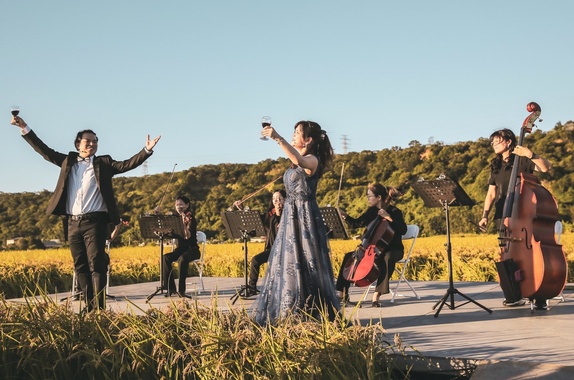 「稻田音樂會」從表演到交通,在每個小細節上,無不提倡低碳與永續淨零的概念。(圖/大甲愛樂室內樂團提供)