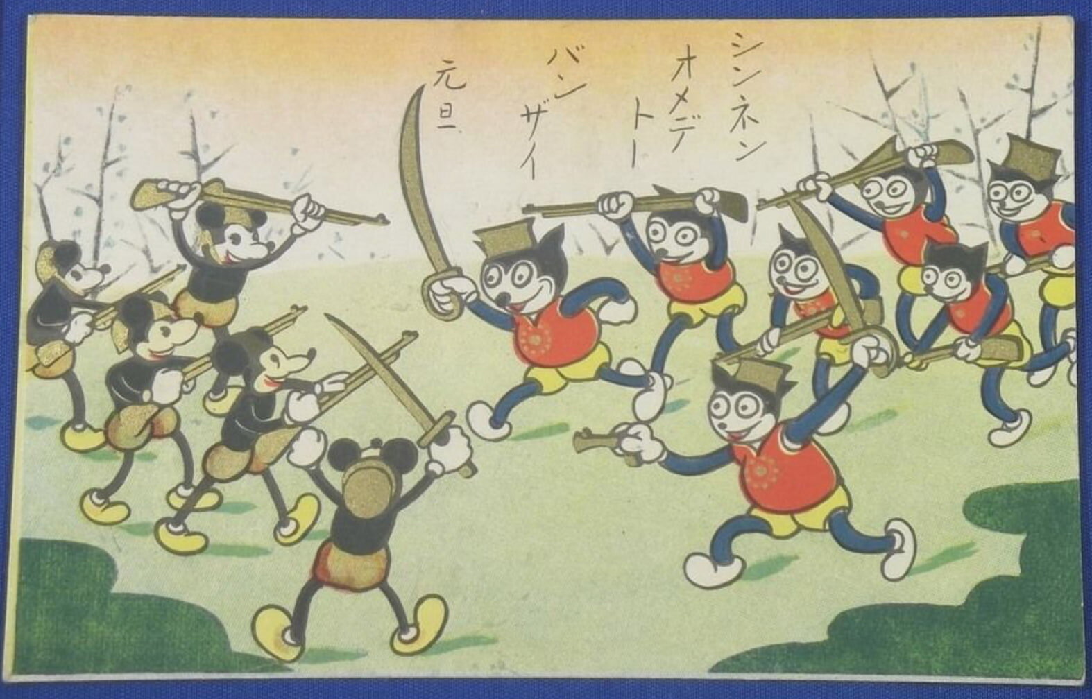 1936 年改編自「玩具箱系列繪本」的黑白動畫,以當時日本委任統治的南洋廳為場景,米奇在動畫中,則被塑造為美國邪惡勢力的代言人,前往去轟炸日本統治的領土,破壞了當地王道樂土的和平氣象。