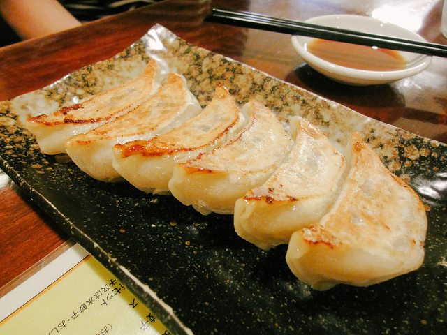 現在日本各地賣的「餃子」,其實中文會說他是鍋貼、或是煎餃,但日本人在二次戰前對於水餃和鍋貼的差別是知道的,從 1932 年(昭和 7)的《月刊 食道楽》雜誌三月號就有介紹餃子的發音是「ギャウザ」,其後滿州國建立,也有介紹「鍋貼(コーテイ)」。但是,現在的日文稱餃子「ギョウザ」則還沒有出現。因此,日本人後來會把餃子當鍋貼的原因,顯然無法在滿州國和二次戰前找到答案,我們還是得把餃子變鍋貼的原因放在二次戰後。
