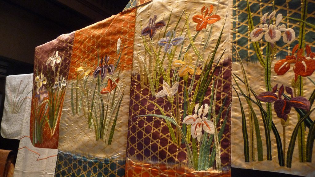 唐織是從中國傳入、裝飾性極強的絹絲織物。它的特徵,是在斜紋織法的基礎上加入彩線,織出的圖案彷彿刺繡般充滿立體感,這便是浮織的技法。從古至今,唐織都是最高級的織物。在古代,只有將軍等身份較高的人的衣物,以及能劇的戲服才會用到。如今,能劇女角的上裝,仍然會用到燦爛奪目的唐織。