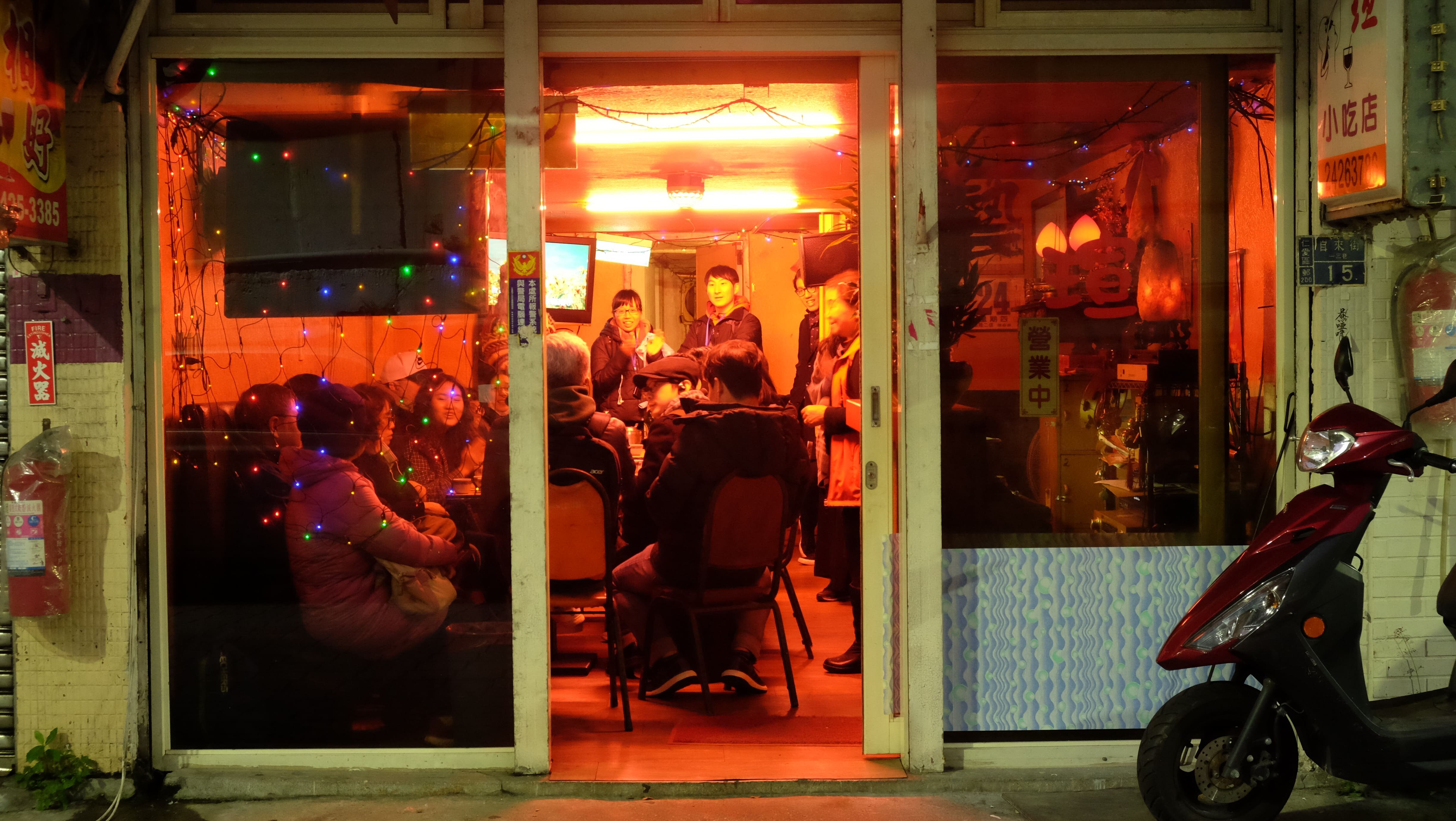 自來街的娛樂產業,在空間與時間上與廟口夜市的興盛,背道而馳,雖然兩者都在基隆火車站附近,可早已不見當年碼頭工人聚集消費的景象。如今,小吃店到了晚上依舊會亮起招牌霓虹燈, 店內以粉色燈光為基調,卡座包廂從現在的眼光看來有些復古,姊姊們身著亮麗洋裝與絲襪,對客人貼心招待。至今仍有些年長男性,到茶店或孝三路卡拉 OK 店,泡一壺茶,尋找陪伴,彷彿當時壯年的碼頭工人們,跟著基隆港和這條街,一起見證歲月的痕跡。