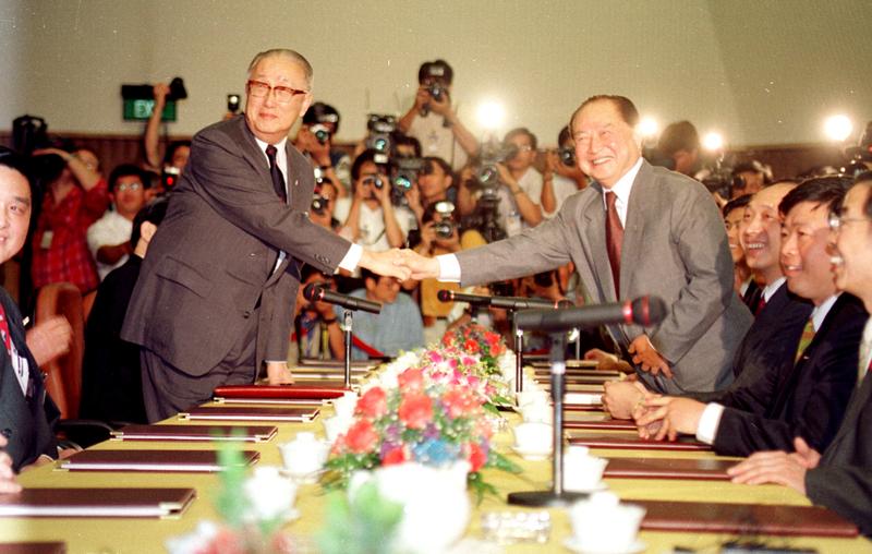 1998 年 10 月 14 日,海基會董事長辜振甫間隔五年後再次會見海協會會長汪道涵,辜指出「一個分治的中國,既是歷史事實,更是政治現實」,批評「大陸方面不肯尊重現實也不肯放棄對臺灣使用武力;而且在國際上設法阻斷我方的活動空間。這種以假設中華民國在國際上已經不存在的作法,只有加激臺灣人民的反感,完全無助於兩岸關係的改善。」