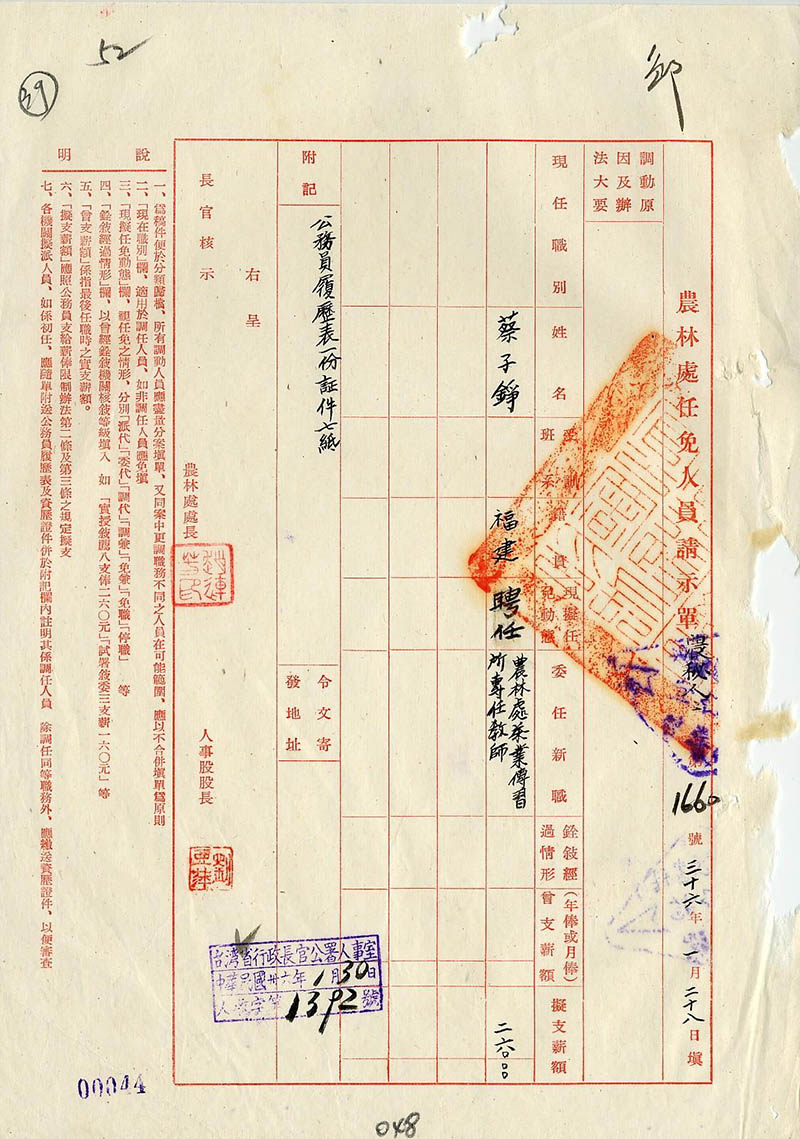 圖 4 農林處茶葉傳習所聘請專任講師(Source: 臺灣省文獻委員會)