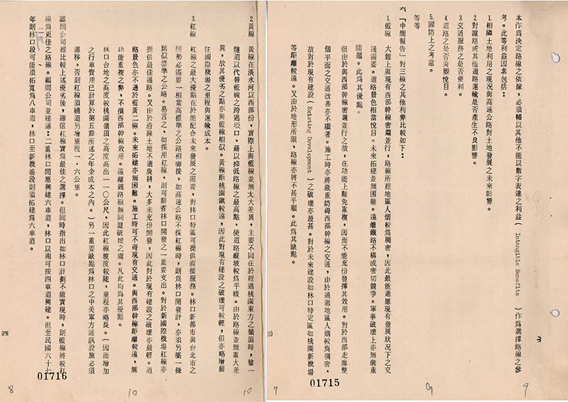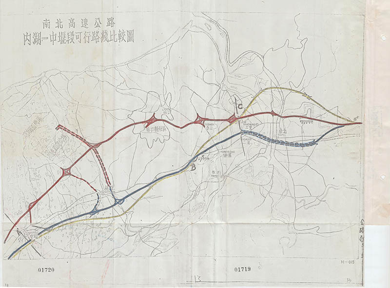1970 年代是林口茶葉產製與紅磚製造的鼎盛期,全球卻爆發石油危機。政府為避免石油危機衝擊我國經濟發展,開始推動十大建設,其中與林口最密切相關的就是打造第一條南北高速公路。我國妥善規劃高速公路工程,邀請美國帝力凱撒工程顧問公司派員前來勘查,初步擬定北部內湖至中壢段有三條路線(圖 9)。第一條,從淡水沿西部海濱轉進至桃園臺地;第二條,貫穿臺北市經三重、新莊至桃園臺地;第三條,從內湖經泰山、林口至桃園臺地(圖 10)。最終,政府考量沿線土地徵收費用多寡,同時為兼顧林口新市鎮的開發,以及強化十大建設桃園國際機場與公路交通網絡的連結,拍板定案路線從內湖、林口至桃園。