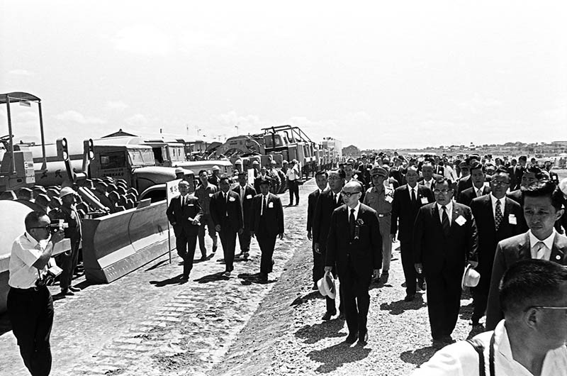 圖 12 副總統嚴家淦巡視各項機具與施工人員(Source: 行政院新聞局)