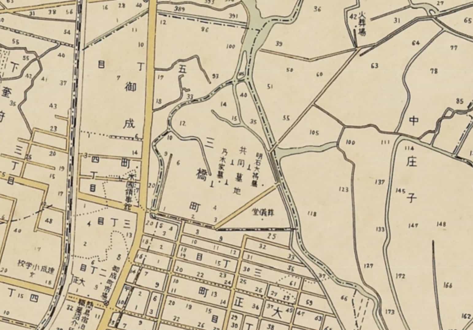 三市街即大稻埕、艋舺,以及臺北城,可以說 1909 年前後,上述的許多共同墓地,多半被移到「頂內埔共同墓地」了,而鬧區內不再見到墳墓。頂內埔那邊是一處臺北盆地東南郊山所圍繞起的田園地帶,再往南就是景美、大坪林的「鄉下地方」了,因此頂內埔共同墓地及周遭山丘成為遷葬的地方。