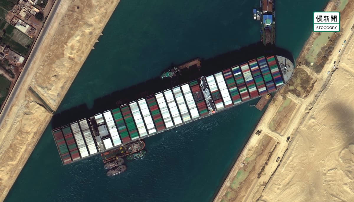 埃及時間 3 月 23 日上午 7 點 40 分,這艘船身近 400 公尺、重達 219,079 噸的巨型貨輪「長賜號」阿賜,通過蘇伊士運河時,忽然偏離航道、船艏深陷河岸,橫向阻斷航行去路,造成蘇伊士運河斷航,成群等著通航的船隻,卡在前後,動彈不得。