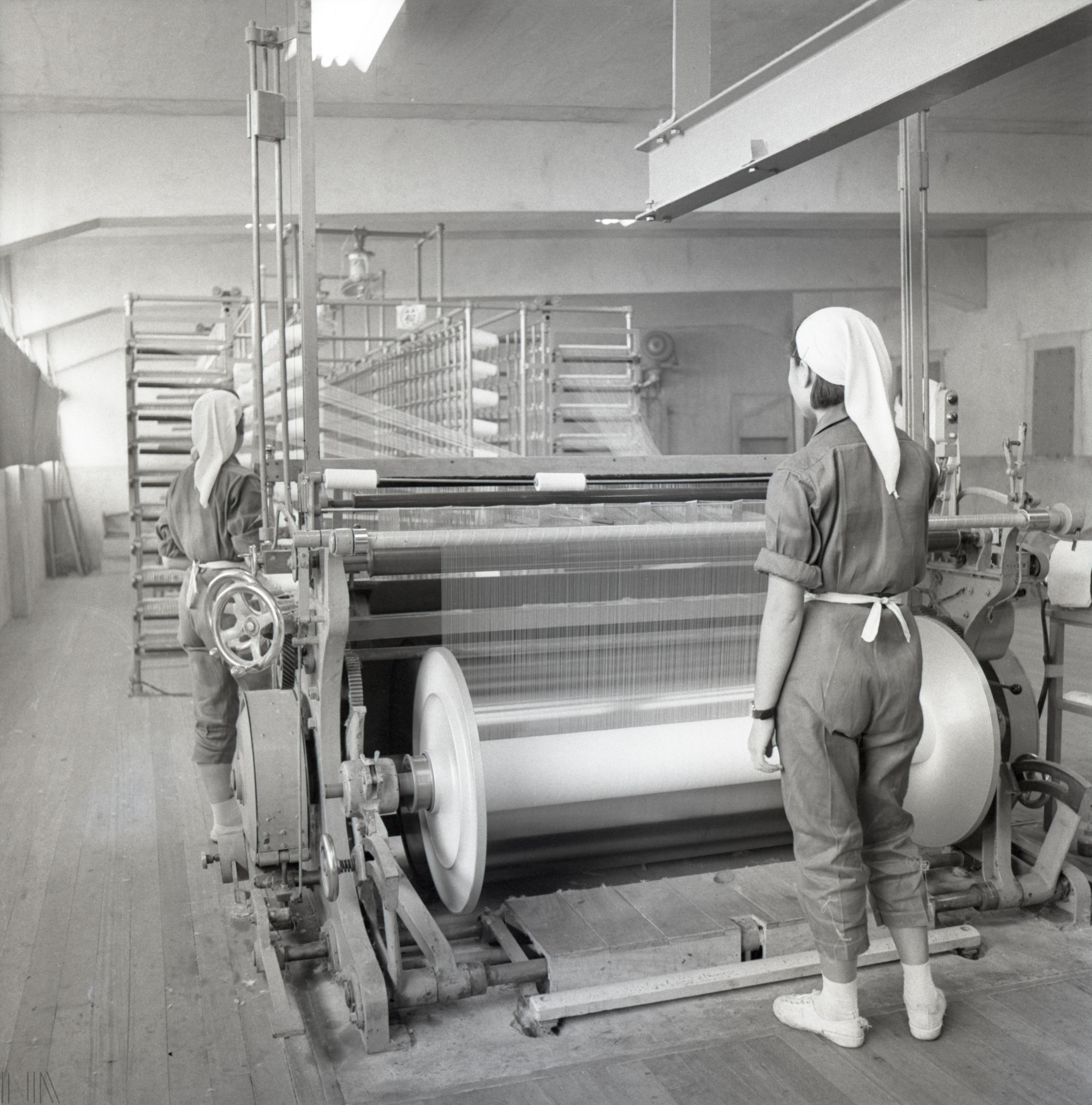 圖 4 這張 1960 年的照片中,有一名包著頭巾的女性操作人造纖維機具。檔號:A325000000E/0049/0007/1