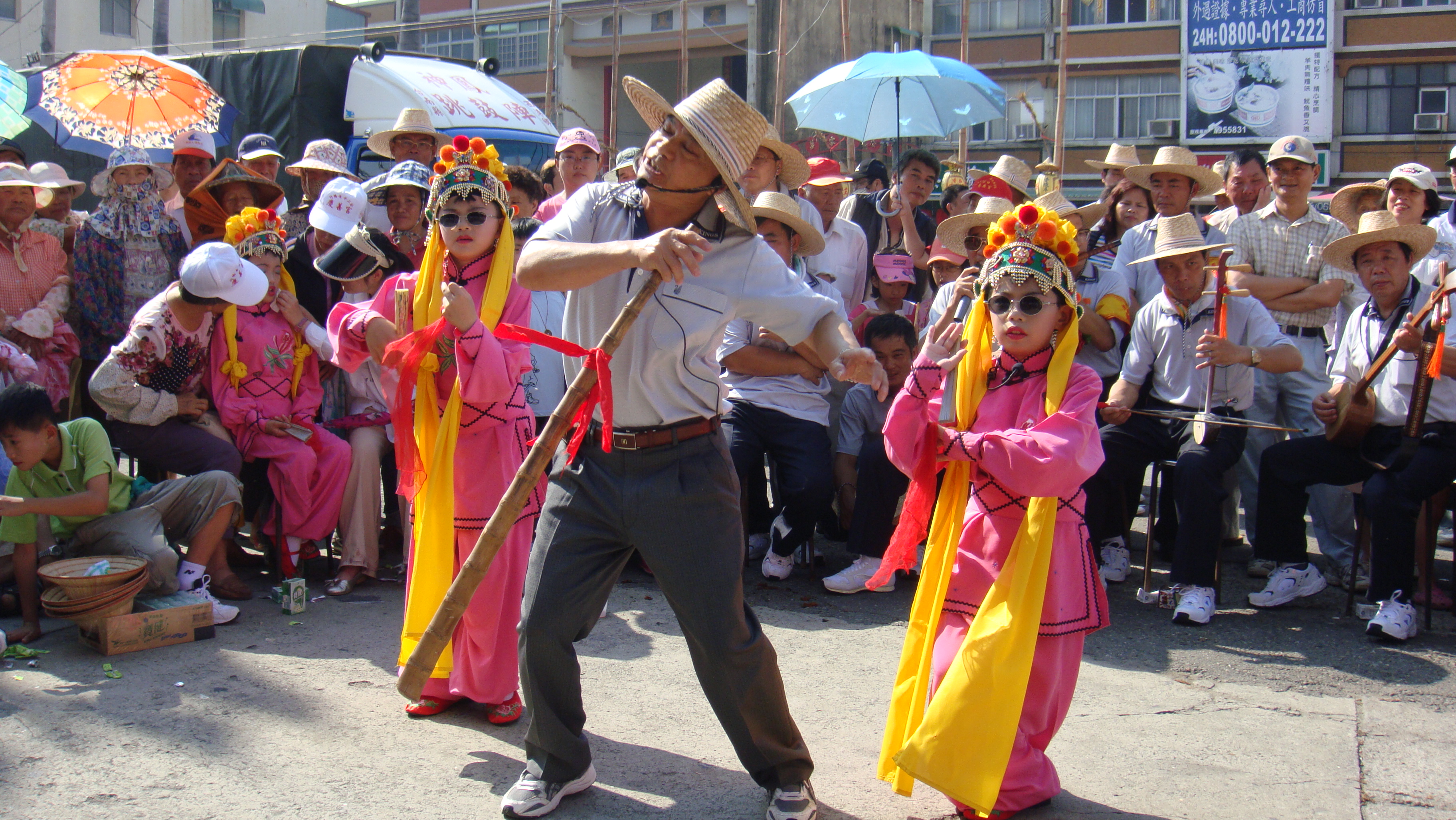 而且過去民俗活動裡,男人負責在前面「走傱」(tsáu-tsông)交陪,女人負責後場支援,各司其職。所以古早臺灣的陣頭,成員多半是男性。但男性的聲音特色是較中穩低沉,而歌曲常常要唱到很高亢處時,就不免要破聲,要唱高音,總是女性比較有優勢。