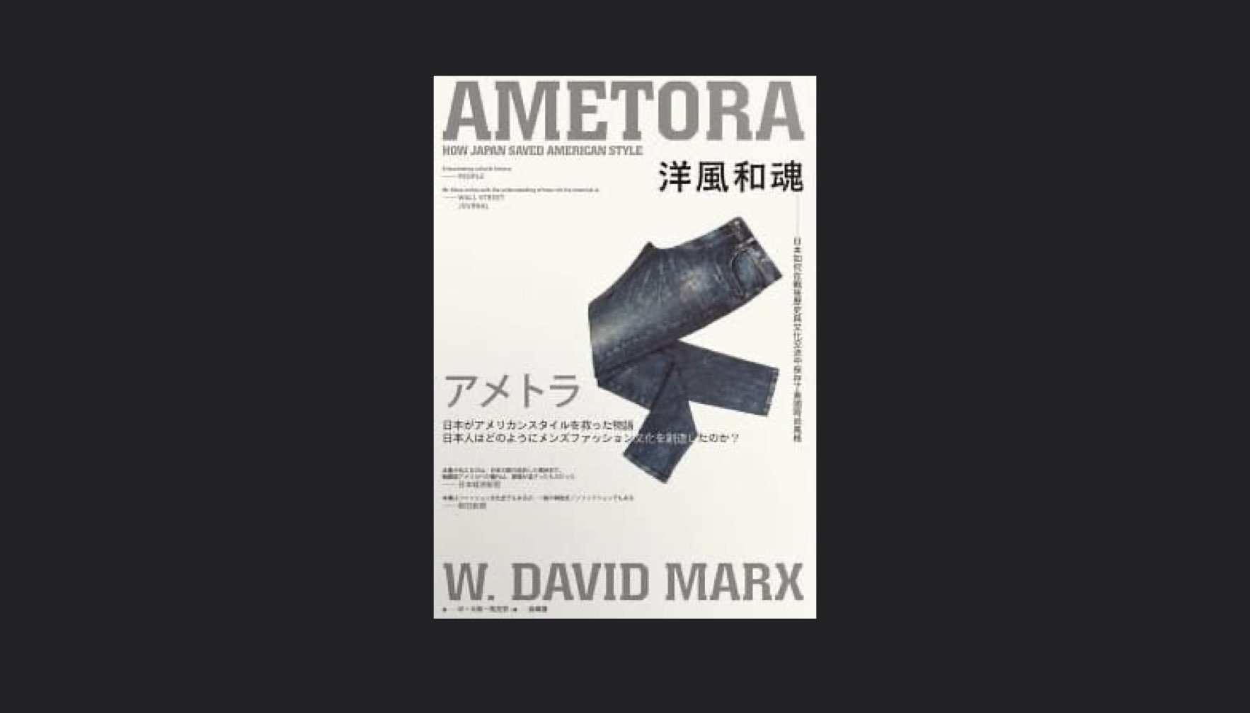 《洋風和魂》作者 W・大衛・馬克思(W. David Marx)是長期關注日本文化的文化評論人,在 GQ、Harper’s 等許多時尚刊物有專欄連載。透過這本書,讀者可以對日式時尚如何在戰後逐漸成為世界主要服裝潮流之一,有更多的認識。[2]