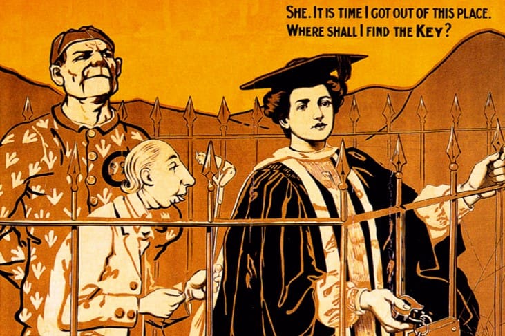 隨著十九世紀後半葉女性參政運動的興起,英國女性終於在 1918 年首次爭取到了部分的[1]投票權和參選成為國會議員(Members of Parliament)的權利。這也就意味著,有史以來第一次,英國女人從天花板和金屬屏風後面走了出來,可以與男性議員們並肩坐在下議院的綠色長凳上,商議國事。可是歷史的前進真的有這麽容易嗎?讓我們來看看洛文多斯基書中對於這段故事的描繪: