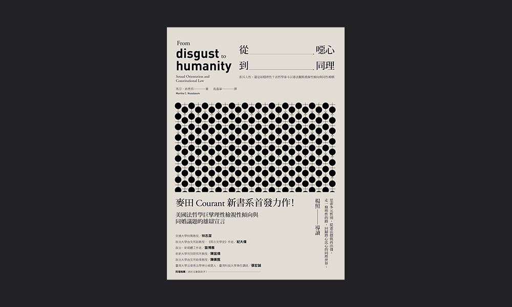 瑪莎・納思邦(Martha Nussbaum)的《從噁心到同理:拒斥人性,還是站穩理性》(From Disgust to Humanity : Sexual Orientation and Constitutional Law)中譯本,對於臺灣社會可說來的正是時候。