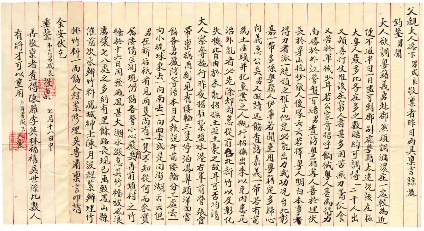 「誓與土地共存亡」的諾言已無力回天:1895 年,劉永福義子發往府城的多封書信